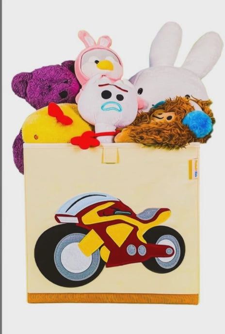 Kids Foldable Toy Storage Cube 13x13 – Washable Canvas Bin Organizer for Playroom, Nursery, motorcycle